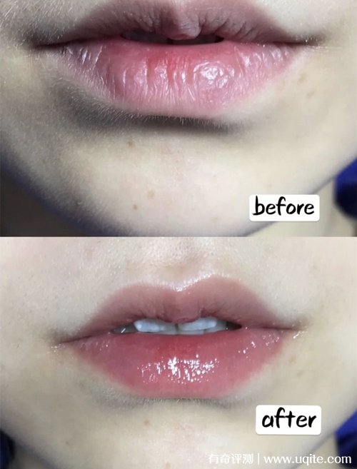 它去死皮效果也蠻好的,晚上我都是涂得厚一點,第二天醒來一張嘴,就感覺上下嘴唇之間掛了絲(白色的),嘴皮都軟化了,輕輕一擦就都掉了。目前用了兩個多星期,每天都在用,我感覺嘴巴整體狀態(tài)是有變好的,起皮沒以前那么頻繁了,就連唇紋看著淡化很多,反正唇色看著沒有之前那么深了。