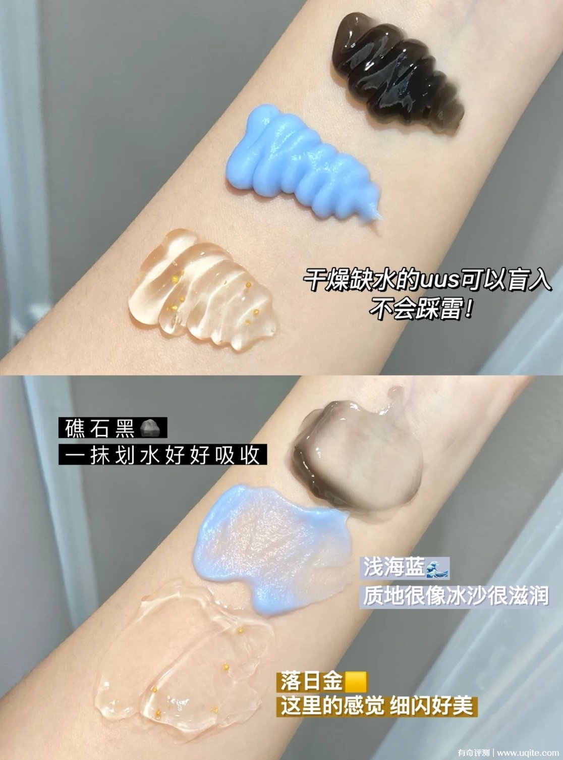pinpoint標點護手霜質(zhì)地整體都是蠻清爽的,我最喜歡的是有一款它的質(zhì)地是啫喱的,里面還帶有金色的小顆粒,抹開不粘膩,吸收還可以,用完一會就可以玩手機了。