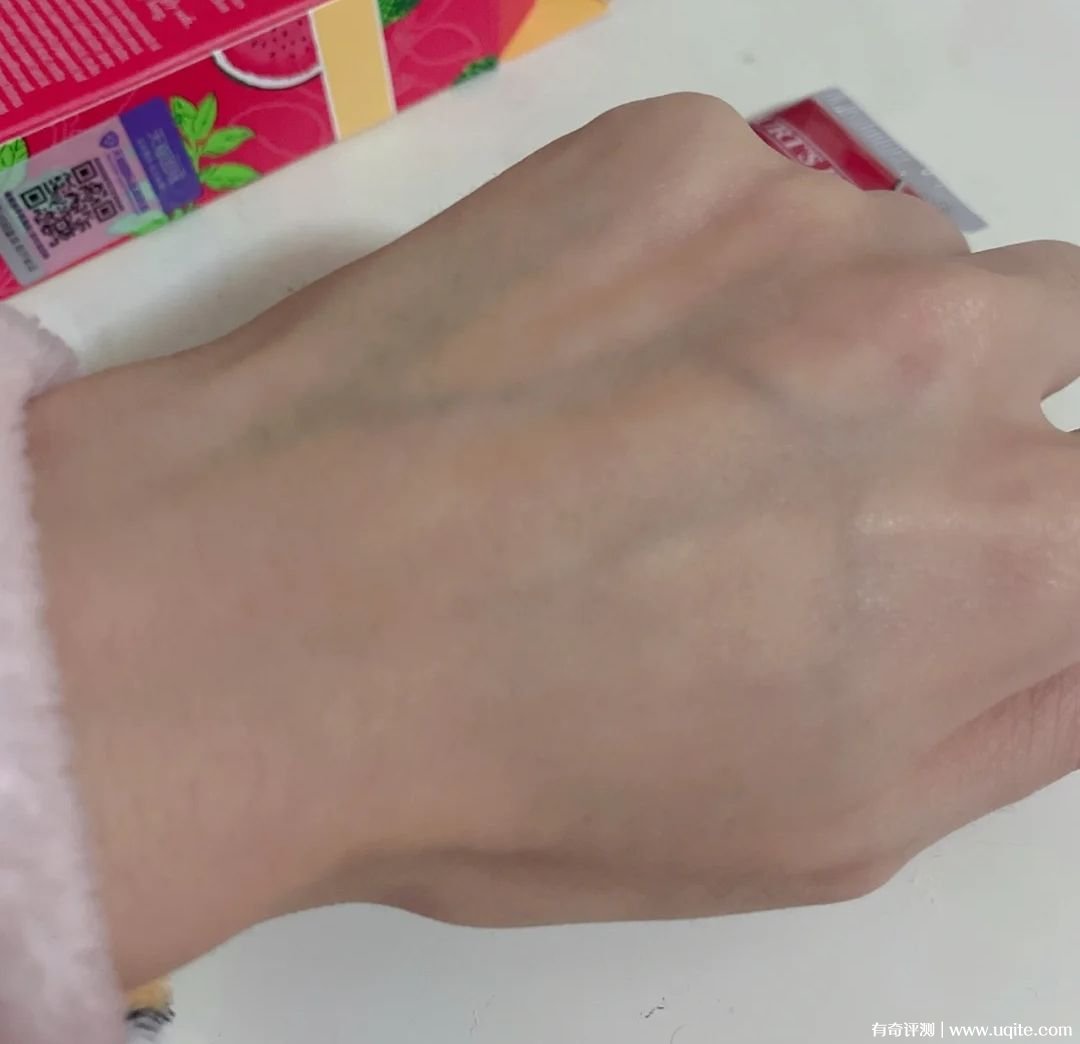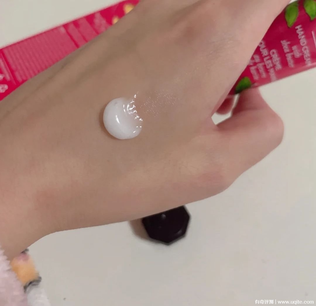 伯特小蜜蜂護手霜味道沒讓我失望,甜甜的西瓜味,很清新,不是劣質(zhì)香精那種感覺。質(zhì)地水潤不粘膩,抹勻后吸收很快,用完一小會就可以干別的了,不會留手指印。