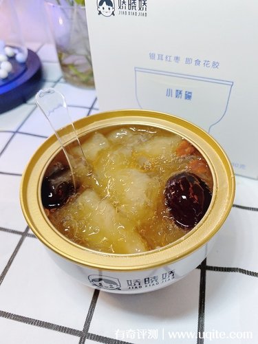 這款嬌曉嬌花膠是密封鐵盒設(shè)計,然后一碗的份量還挺足的,里面的花膠塊很大,而且還放了一些紅棗枸杞之類的食材,看著就很滋補(bǔ)養(yǎng)人。