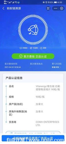 這款Vitanergy維生能護(hù)肝片到手后包裝完整,而且瓶蓋上方貼有防偽驗(yàn)證二維碼,我掃描了一下,確實(shí)是正品產(chǎn)品,所以使用起來(lái)就還挺放心的。