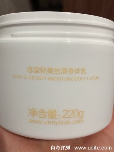 unny身體乳的質地來說是偏滋潤的,好推開,推開后不粘膩,吸收速度中等,不是特別快但也不慢,用完皮膚摸著軟潤了些,水分感明顯上升。