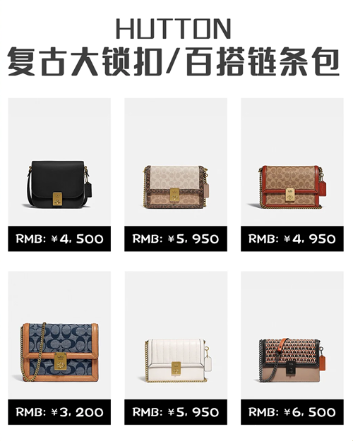 喜歡鏈條包的,就可以選擇HUTTON系列中的這幾款包包,就非常百搭,而且復(fù)古大鎖扣設(shè)計(jì)又給包包添加了一股高級(jí)的韻味。