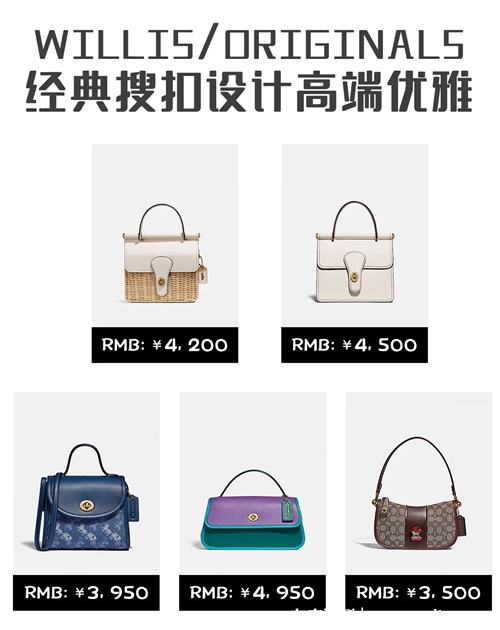 Coach他們家的包包系列產(chǎn)品是最為出名的,不過因?yàn)樽叩氖禽p奢路線,所以價(jià)格比起高奢品牌如LV、古馳來說就便宜了很多,基本上都是1500-6000左右就能拿下一款。