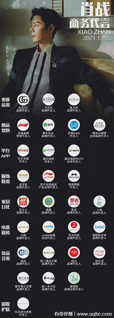 肖戰(zhàn)憑借陳情令魏無羨一角大火,一躍成為內(nèi)娛的頂流小生之一,憑借著高人氣,自身的商業(yè)價(jià)值也是很高的,截止2021年12月份,他的代言多達(dá)28個(gè),下面就來看看肖戰(zhàn)代言的品牌有哪些。
