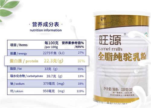 旺源是新疆本土專注于駱駝相關(guān)產(chǎn)品的企業(yè),在駝奶粉領(lǐng)域有一定的研究積累。 旺源駝奶粉在全脂奶粉中,營養(yǎng)價(jià)值很有競爭力,最為突出的是鈣含量,每100g高達(dá)950mg。在維生素和氨基酸等營養(yǎng)成分上,與同類產(chǎn)品相比它也毫不遜色。