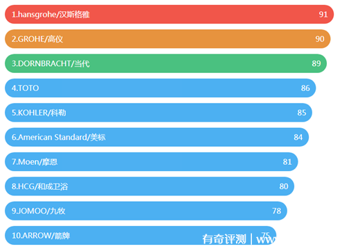 和成衛(wèi)浴成立于1931年,至今已有近90年歷史,是中國臺灣第一衛(wèi)浴品牌。和成衛(wèi)浴龍頭、花灑等五金產(chǎn)品由路達(dá)集團(tuán)代工,產(chǎn)品不良率不足0.01%?;a(chǎn)品線以非恒溫套裝為主,采用陶瓷閥芯、ABS材質(zhì)頂噴與手持花灑,成本較低,但抑菌效果不如銅質(zhì)?;⑦m用水溫從4-90℃,表層電鍍達(dá)到10級,媲美國際一線品牌。