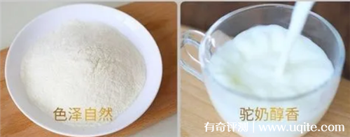PS:駱駝奶粉粉質(zhì)呈乳白色、顆粒細(xì)膩,不粗糙、口感清香,后味微咸、溶解性強(qiáng)分子小,不結(jié)塊。