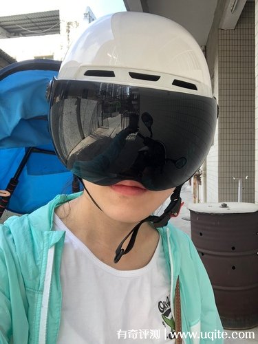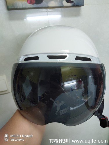 曉安頭盔挺不錯的,后面商家標識大了些不喜歡就給撕掉了。買了兩款,白色款式的很輕便,鏡片很短;灰色款式稍重了點,相比較的話更為舒適耐看。
