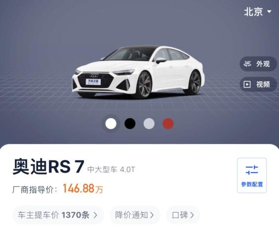 2022款?yuàn)W迪rs7最新價(jià)格:146.88萬(wàn)元