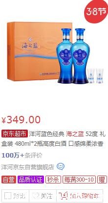 洋河藍(lán)色經(jīng)典系列酒是一款非常著名的酒品牌,許多人都非常愛喝,其中海之藍(lán)酒非常著名,今天給大家介紹一下2022年最新海之藍(lán)酒52度價(jià)格,官方旗艦店480ml兩瓶349元,非常劃算。
