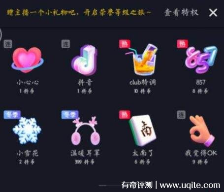 1、禮花筒199抖幣;2、小云朵50抖幣;3、至尊禮炮66666抖幣;4、游艇3888抖幣;5、表白氣球521抖幣;6、私人飛機(jī)3000抖幣;7、火山爆發(fā)13140抖幣;8、蘭博基尼5200抖幣;9、豪華火箭6666抖幣;10、夢幻城堡2888抖幣;11、慶典趴2999抖幣;12、七彩玫瑰21000抖幣;13、板磚5抖幣;14、定情鉆戒199抖幣;15、老鐵3999抖幣;