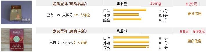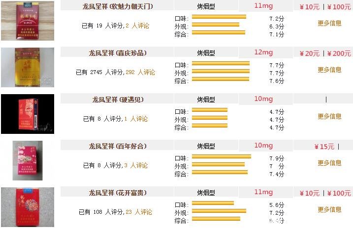 2022年最新龍鳳呈祥香煙價格大全一覽