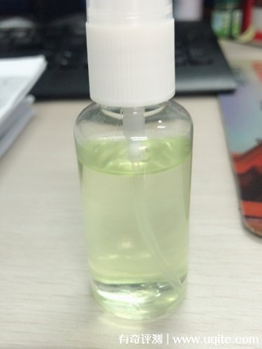 這個(gè)噴瓶噴出來的氣霧還是比較細(xì)膩的,噴射面也挺廣的,而且還送了個(gè)小噴瓶,平時(shí)在戶外可以隨身帶著,比較方便。液體是淡綠色的,和花露水挺像的。剛噴出來的時(shí)候氣味有些刺鼻,有種中藥味,類似云南白藥,不過過一會(huì)就基本消散了,很清涼。