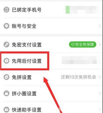 2、在設(shè)置里找到先用后付選項,然后點擊進