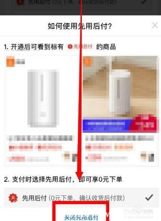 4、這是在最底部就會出現(xiàn)關(guān)閉先用后付的按鈕,直接點擊這個按鈕。