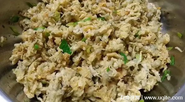 3、加入適量素湯、性味粉、香油等調(diào)味料攪拌均勻,制成餡料。