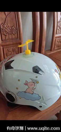 收到貨的時(shí)候還送了個(gè)黃色的小風(fēng)車(chē),感覺(jué)戴著它就能像哆啦A夢(mèng)一樣飛起來(lái)了,賣(mài)萌拍照必備。頭盔表面挺光滑的,竹蜻蜓吸附得比較穩(wěn)。