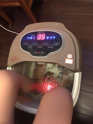 拿回來的當(dāng)天晚上就使用了,它是自動加熱,所以只需要加入適量的水就可以了,溫度可以根據(jù)需要進行調(diào)節(jié),差不多五分鐘左右水溫就達到了設(shè)定溫度,還是很快的,因為它的桶很深,司儀差不多可以將小腿部位完全浸沒。