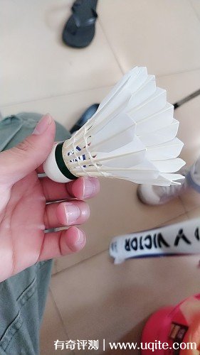 羽毛球好壞的一個關(guān)鍵就是它的球羽,威克多羽毛球的球羽蒸汽、羽毛桿筆直粗壯,第一次用它打球的時候,連續(xù)打了一個多小時,球羽也沒有損壞的太多,這已經(jīng)足夠了,而且在極大的時候,感覺整個羽毛球很穩(wěn)定,這說明它的整個羽毛球的氣動布局很合理吧。