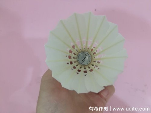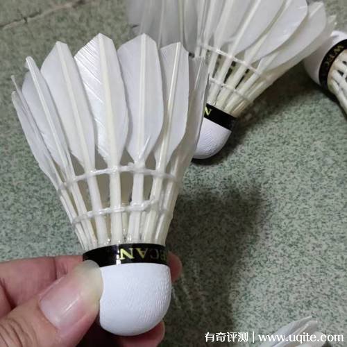 一般的羽毛球采用的都是鵝毛羽毛片,但是威肯羽毛球它采用的是鴨毛,所以它的羽毛片更加的整齊、厚實。羽毛桿的更加的粗壯一些我還特意的彎折了一下,很有韌性,所以第一次使用的時候打了那么久,它也沒有損壞。