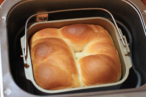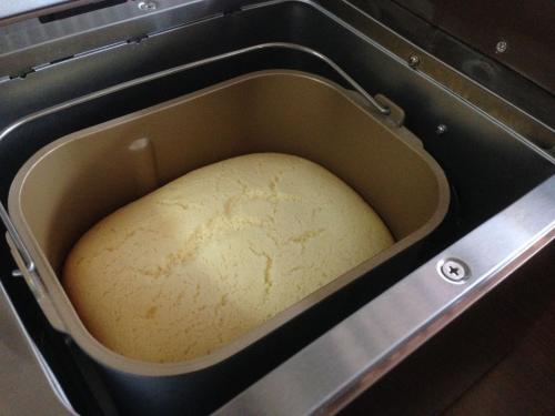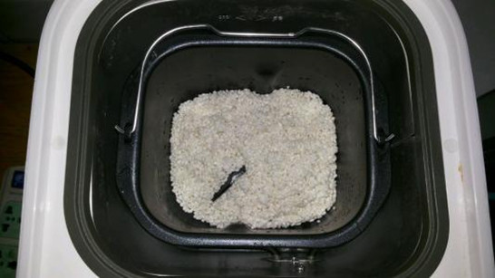 3、發(fā)酵好的面團放入面包機