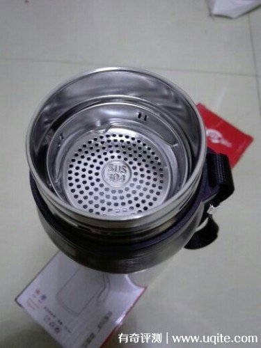 它的一大亮點在于,它的杯蓋可以顯示水溫,避免被燙傷,我也特意試了一下,的確是很準(zhǔn)確的,杯蓋是那種縮小型的設(shè)計,所以在擰開的時候,更加的方便,內(nèi)部還會 專門有一個過濾蓋,可以輕松的將茶渣過濾掉,而且也是不銹鋼設(shè)計,可以長時間的使用。