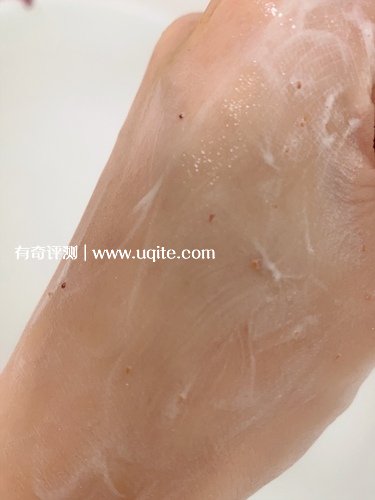 它的質(zhì)地很順滑,磨砂顆粒不大,用在身上不疼,清洗起來也挺方便,不會有洗不干凈的感覺。擦干之后皮膚摸著滑嫩嫩的,手感很好,我自己都愛上了摸自己。