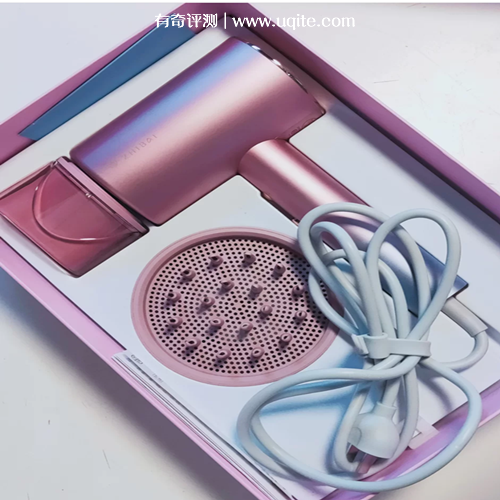 收到產(chǎn)品后它的顏值再次驚艷到了我,機身是一個漸變的感覺,手柄底部是淡紫色,真的非常好看,采取的是兩檔風速,三檔風溫的設計,使用起來也簡單易上手,除了裸機外還額外有兩個移動頭,分別是擴散風嘴和造型風嘴。