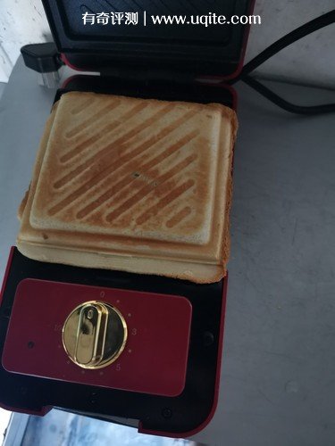 需要注意的一點(diǎn)是,在用這款早餐機(jī)做三明治的時(shí)候不要放太多的食材,可能會(huì)扣不上不能封邊,我一次用的時(shí)候不知道,東西放的有點(diǎn)多,差點(diǎn)蓋子就合不攏了,它是兩面都有加熱,所以速度很塊,不要十分鐘就可以吃了,烤出來(lái)的三明治兩面金黃,口感很酥脆。
