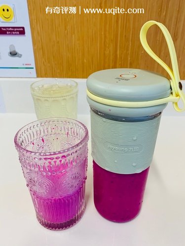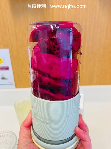 這款榨汁機一到,我就迫不及待的把它拿出來,想試試效果,我切了一點火龍果放進去(水果盡量切小點),雙擊開關啟動,榨汁的時候火龍果籽都可以打碎,可見刀片還是很鋒利的,榨汁的時間也較短,我感覺一兩分鐘就榨好了,喝著口感很細膩,跟外面賣的水果汁沒有什么區(qū)別,自己榨的價格還更低,榨果汁的時候可以放點蜂蜜哦,口感會更好。