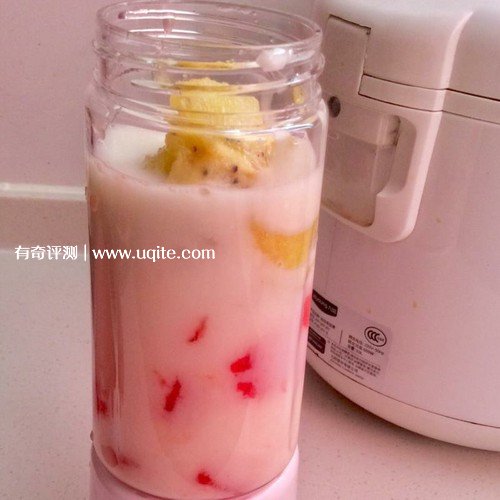 有時(shí)候我趕著去上課,來不及吃早餐,就會(huì)用酸奶或者牛奶混著水果一起榨,做成一杯奶昔,帶去教室喝,用時(shí)也非常短,刷個(gè)牙的時(shí)間就榨好了。清洗起來也很方便,用清水沖一沖就好了,也不用擔(dān)心牛奶酸奶會(huì)在里面結(jié)塊,像酸奶質(zhì)地比較濃稠就要多沖一會(huì)。