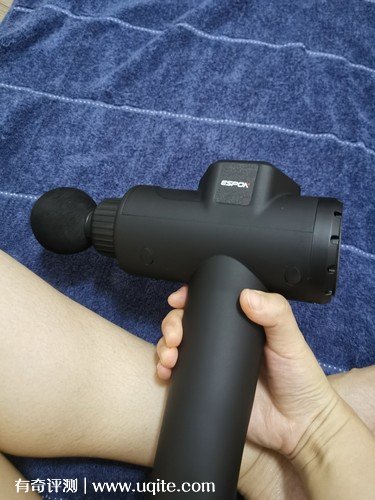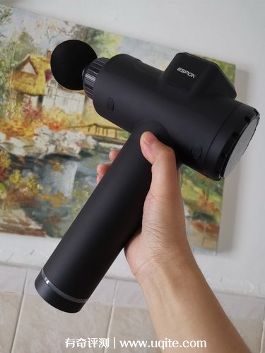 筋膜槍的長度就和手掌差不多,重量上和礦泉水差不多,真的挺輕便的,攜帶挺方便的,一次用完差不多10分鐘,不累人。做工方面很好,有點接近磨砂手感。