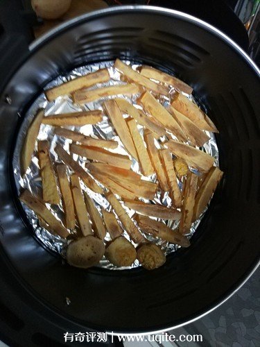 這款空氣炸鍋的外形有點像家里用的電飯煲,造型挺小巧的,也不占什么地方,外殼噴漆的設(shè)計,看著挺好看的,清洗也很方便??諝庹ㄥ佌ㄖ剖澄锸遣恍枰偷?,直接將食材放進去即可,我雖然也是第一次用,不過還好,它是那種旋轉(zhuǎn)式的調(diào)節(jié)方式,根據(jù)食材的不同選擇炸制的溫度和時間即可,時間一到它就會自動停止烤制,所以非常的方便快速。