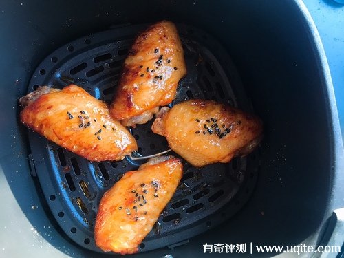 這個(gè)空氣炸鍋一到,我就馬上給自己炸了一鍋雞翅、雞腿自己來(lái)犒勞自己的胃,十分鐘左右就炸好了。我在炸雞翅的時(shí)候還擔(dān)心會(huì)不會(huì)粘鍋啊,會(huì)不會(huì)烤糊,但成品出來(lái)我還是很滿意的,它有一個(gè)不粘鍋的內(nèi)膽,清洗起來(lái)也很方便,再加上恒溫定時(shí),到點(diǎn)就自動(dòng)關(guān)掉,也不會(huì)擔(dān)心會(huì)炸糊。