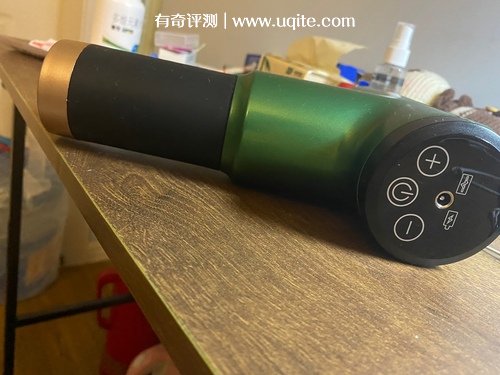這款筋膜槍是噴漆的設(shè)計(jì),看著還挺好看,很有質(zhì)感。筋膜槍的長(zhǎng)度就和手掌差不多,重量上和礦泉水差不多,真的挺輕便的,攜帶挺方便的。