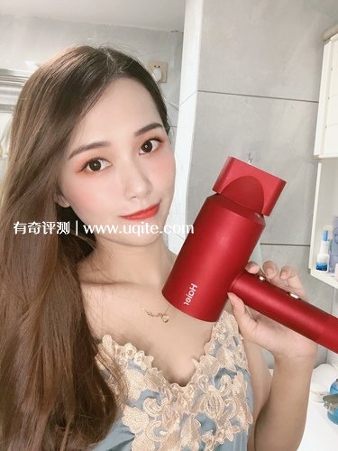 這款吹風機的顏色還挺好看的,是紅色的外殼包裝,看著很大氣。做工也很好,沒有什么瑕疵,拿在手里也很有質(zhì)感,也不重,對于頭發(fā)長發(fā)量多或者是力量比較小的女生非常友好,用起來很輕松。