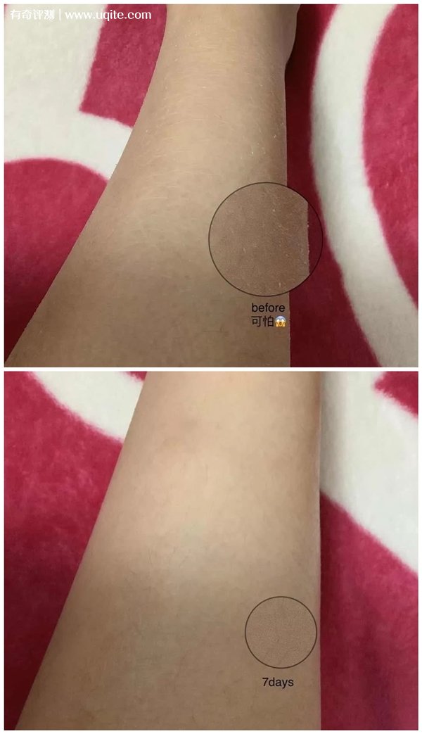 目前我用了一個星期,皮膚明顯細嫩不少,完全沒有皮屑了,效果挺好的。