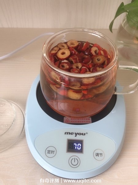因?yàn)槊讯喙δ鼙乇瓑|加熱部位面積還算大,所以很多型號(hào)的杯子都能放上去,偶爾孩子睡著的時(shí)候,也會(huì)拿它來(lái)泡泡茶,開(kāi)到最高的8檔,時(shí)間上來(lái)說(shuō)也差不多,效果很不錯(cuò)。