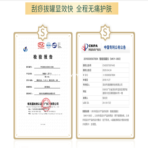 使用過后,我個人對這款奇朗的刮痧儀是很滿意的,為了知道產(chǎn)品的安全質(zhì)量問題我還專門去官方旗艦店看了一下生產(chǎn)檢驗報告,這是一款申請了專利的產(chǎn)品,所以安全質(zhì)量方面是可以安心使用的。