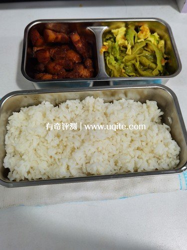 這款飯盒的加熱功能還是很強的,熱飯的速度還挺快的,五六分鐘就熱好了,而且熱好的飯菜也沒有變干變黃,吃起來的口感還是很好的。