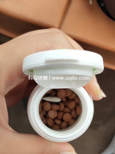 拿到產(chǎn)品后,我就迫不及待的拆開了,瓶子上面寫的是90粒裝。瓶子不大,里面的藥粒也不大,是那種小棕色的圓形,聞起來就是有一種鈣片的味道,吃起來到還好,沒有嘗出什么味道來,而且它的顆粒不大,所以吃在嘴里也不會覺得難咽,感覺還不錯。