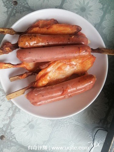 上圖是我用空氣炸鍋烤的香腸和雞柳,是不是看著很誘人,我家孩子說跟外面賣的一模一樣,特別好吃。