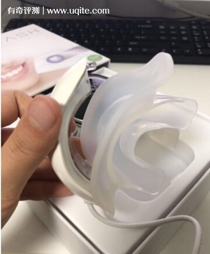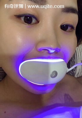 儀器拿到手的當(dāng)晚我就迫不及待的開始使用了,在用的時(shí)候它是會(huì)有一個(gè)紫色光的,將U型美牙儀上的硅膠牙套用牙齒咬住就可以了,使用的過程中其實(shí)是沒有太大的感覺的,就是嘴巴要一直咬住這個(gè)儀器會(huì)流口水,不過習(xí)慣了也就還好。