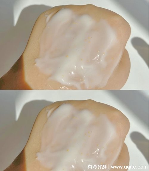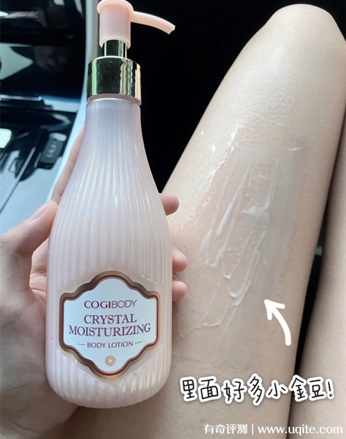 高姿粉晶身體乳里面有小金豆顆粒(里面含有vc和ve)質(zhì)地有點(diǎn)偏乳液的質(zhì)地,涂在身上一抹就化水,它吸收速度還挺快的,輕輕按摩一會(huì)就全部吸收了,完全不用擔(dān)心會(huì)沾到衣服上。用完后皮膚水潤(rùn)度很高,皮膚摸著也不粗糙了,而且摸著更光滑細(xì)膩了,看著很有光澤。