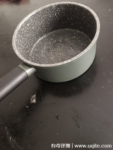 這個九陽小奶鍋看上去就很厚實,跟麥飯石不粘鍋長得很像,不過這款采用的是莫桑石不粘,就是跟鉆石很相似的莫桑石,聽起來就比較高級,而且復(fù)古綠的顏色也看起來不錯,顏值是不錯的。