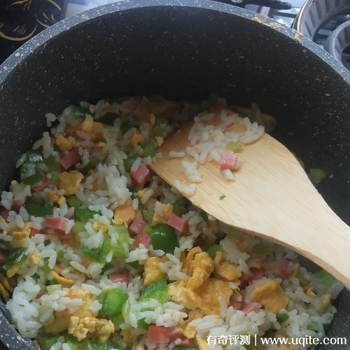 功能上呢,煎炸蒸煮都是可以的,而且是不粘鍋,合理使用效果還是很不錯的。炒個蔬菜花飯給孩子,炒的時候感覺黏糊糊的,但做好后,鍋體一沖就干凈了,超級好打理。