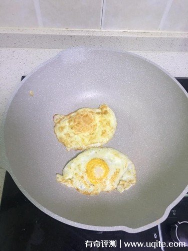 煎雞蛋是最容易感受到粘鍋的效果,而且還能檢驗(yàn)到受熱效果,雞蛋打下去,很快起反應(yīng),以前用的鐵鍋,很容易就糊鍋,而且粘上面一弄就破,而這就是eox麥飯石鍋的效果,翻面毫無壓力,而且沒有糊鍋的痕跡,不粘效果好,受熱也均勻。