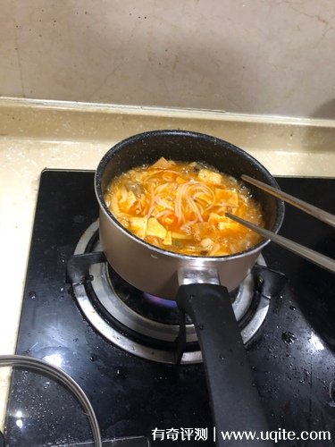 不過需要注意的是,因?yàn)槭敲赖哪体伿清侒w直接加熱,千萬不要煮好就直接抱起來吃,鍋體還是很燙的,最好用東西墊一下,不管你盛不盛出來吃都可以,反正都是你一個(gè)人的。