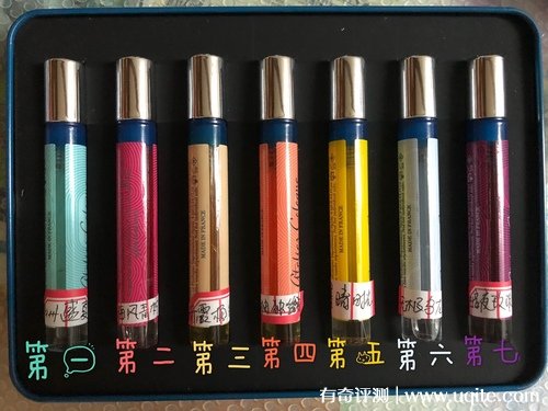 香水的整體包裝非常的好看,裝香水的盒子是鐵的,拿在手上很有質(zhì)感,盒子里面一共有七支不同香型的香水,分別是情柚獨(dú)鐘、赤霞橘光、無極烏龍、馨情時(shí)光、加州柑橘、海風(fēng)青檸和暗夜玫瑰。都是4ml的量。